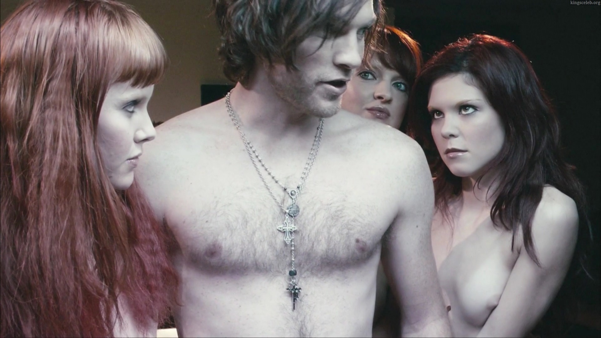 Naked witches Miranda Nation, Kate Bell, and Chloe Armstrong prepare a magical potion.