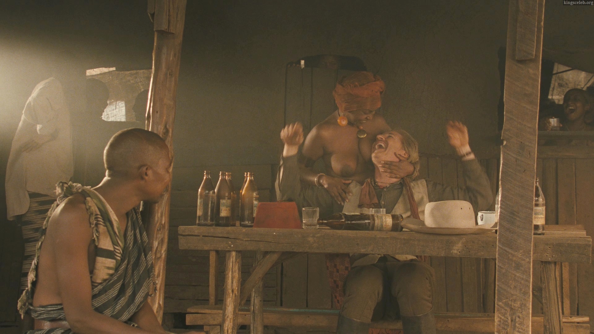 Topless Helena Waithera kisses a white guy.