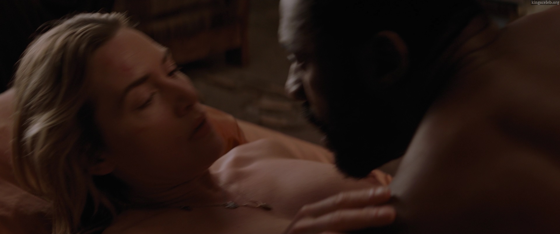 Naked Kate Winslet makes love to a guy in an abandoned house in the mountains.