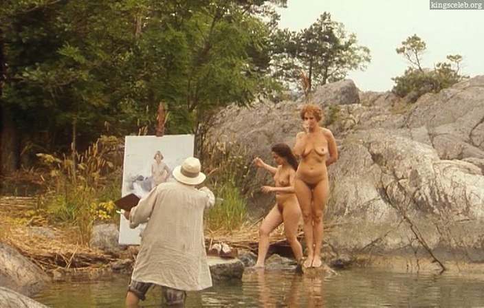 The artist paints naked Birgitte Sondergaard and Nina Ponten on the seashore.