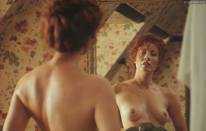 The artist asks a naked Linda Kozlowski, "Are you leaving me?"