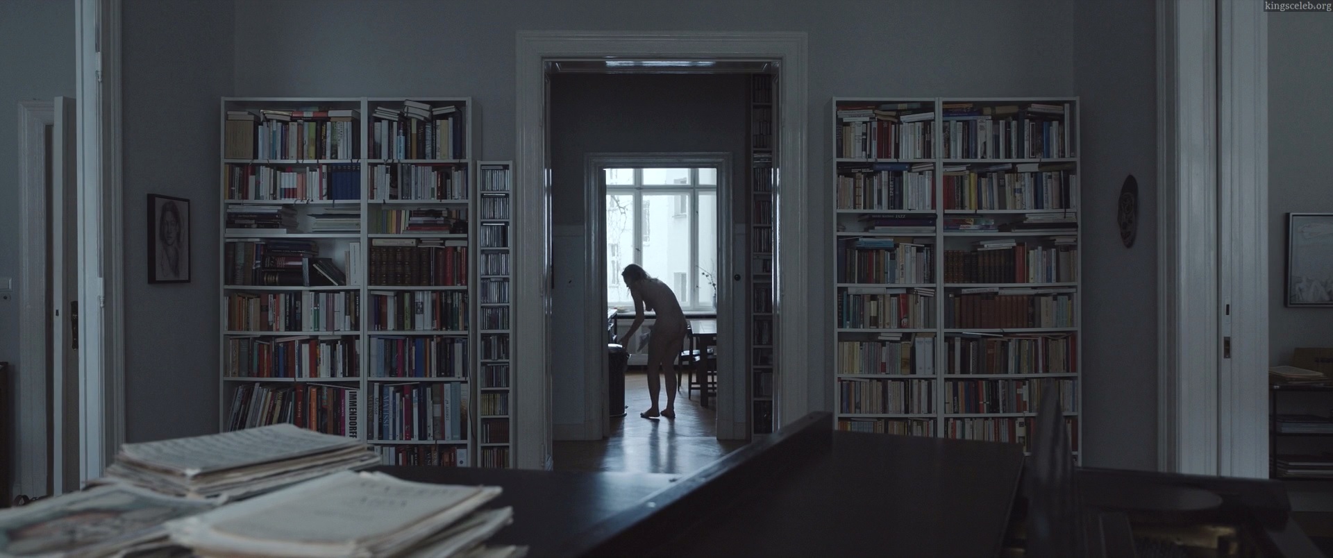 Naked Cate Blanchett runs into the bathtub and tries to wash her feet.