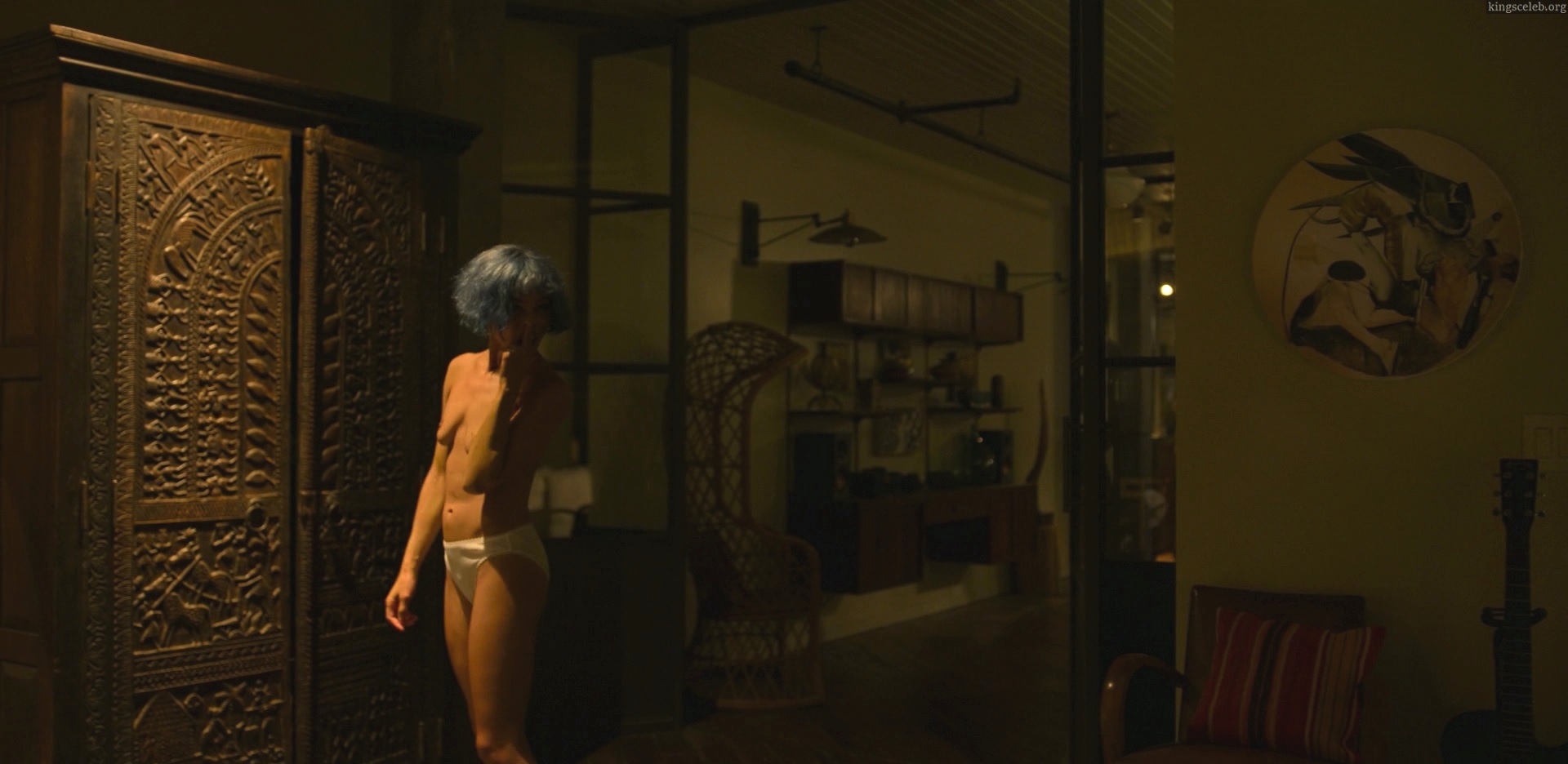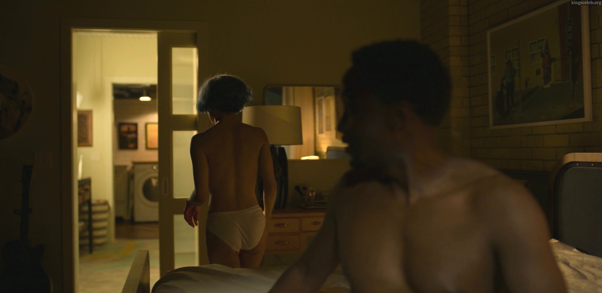 Naked Zoe Kravitz gets out of bed and hears a confession from her boyfriend that he actually don't work for the cable company.