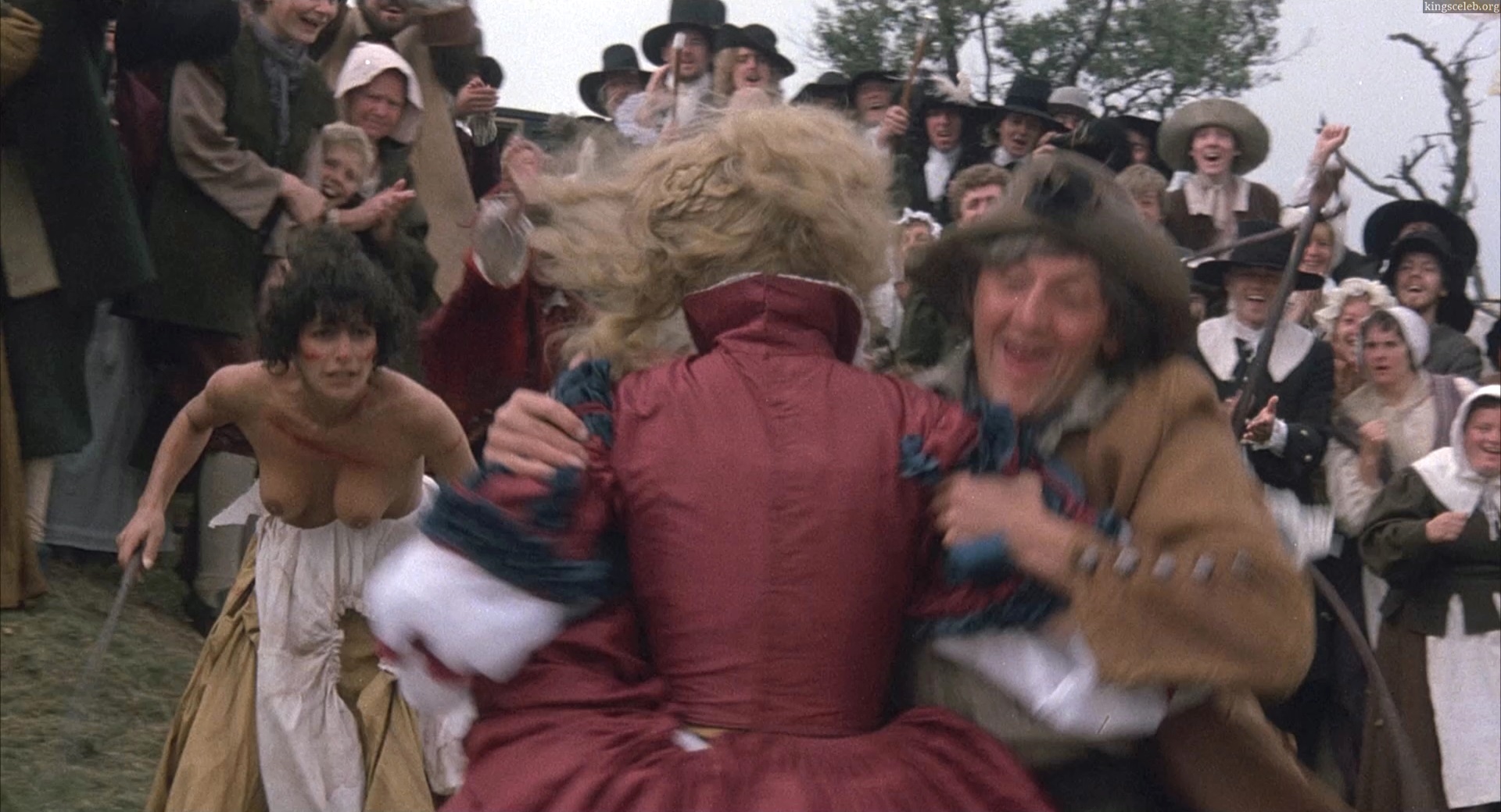 A topless Marina Sirtis fights with a woman for whom her lover is about to be hanged.