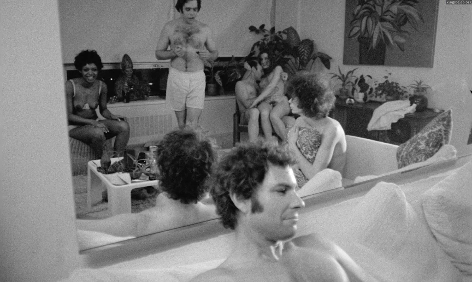 Sally Kirkland undresses and tells her boyfriend that having sex in front of a mirror feels like an orgy.