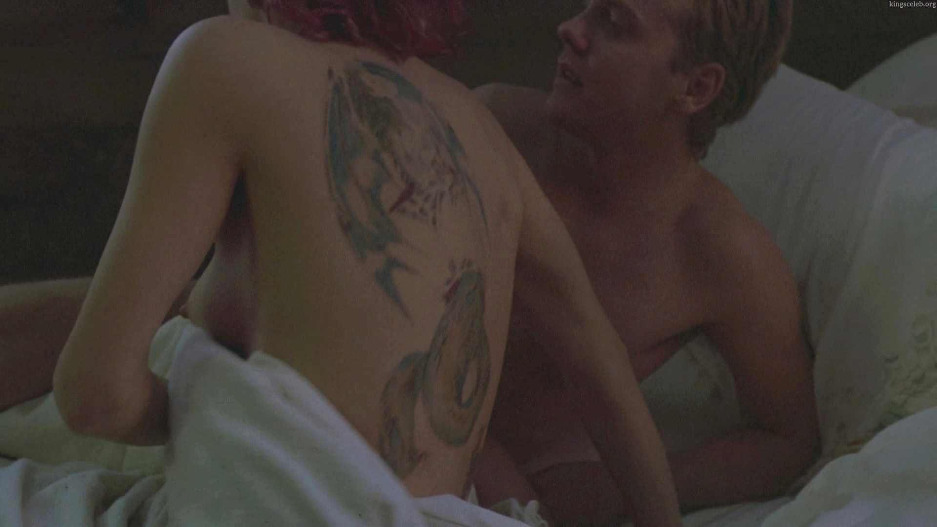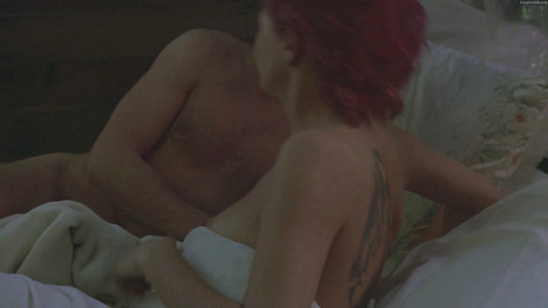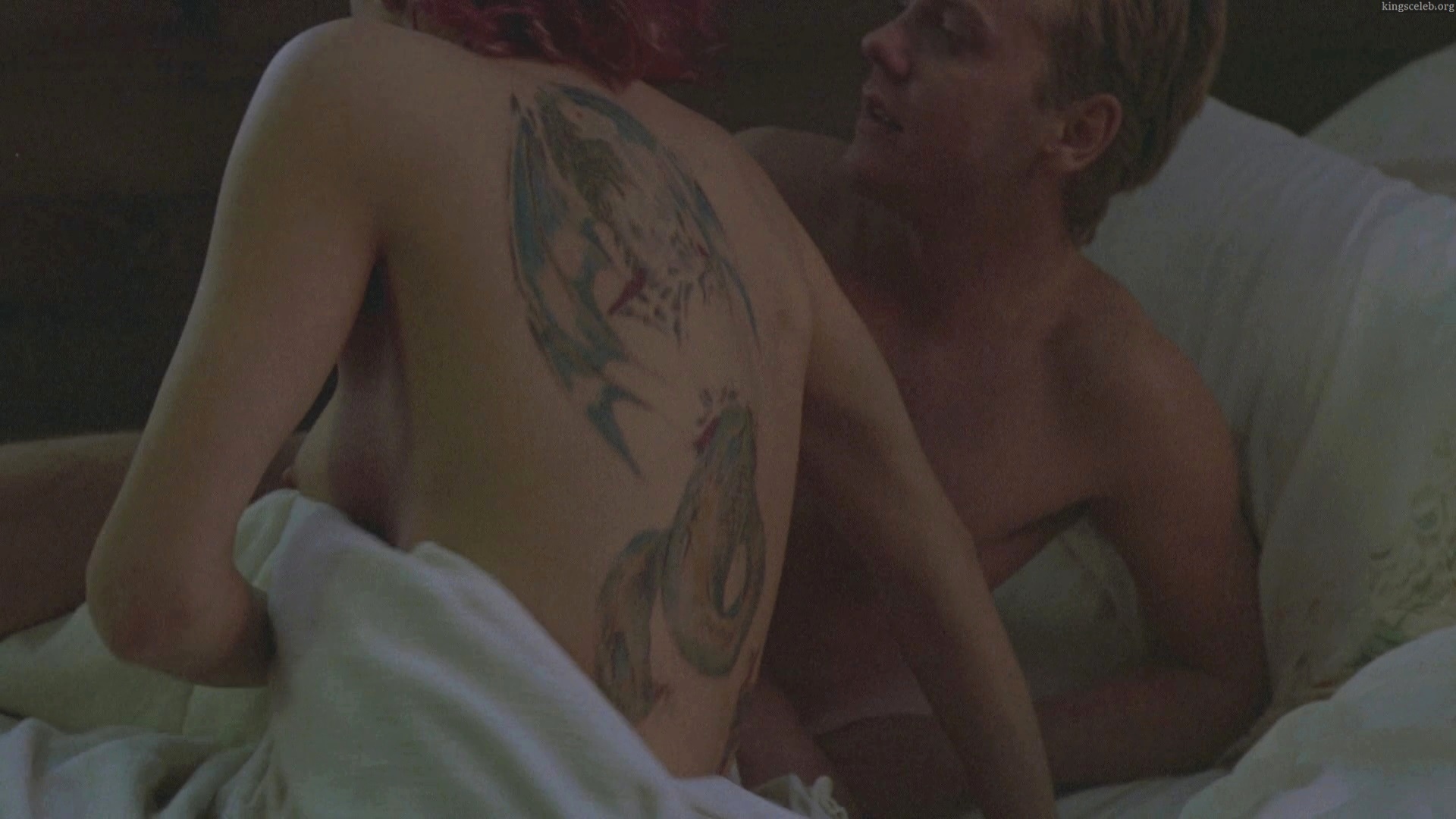 Meg Ryan's bare breasts are visible from under the covers as she tries to wake up.