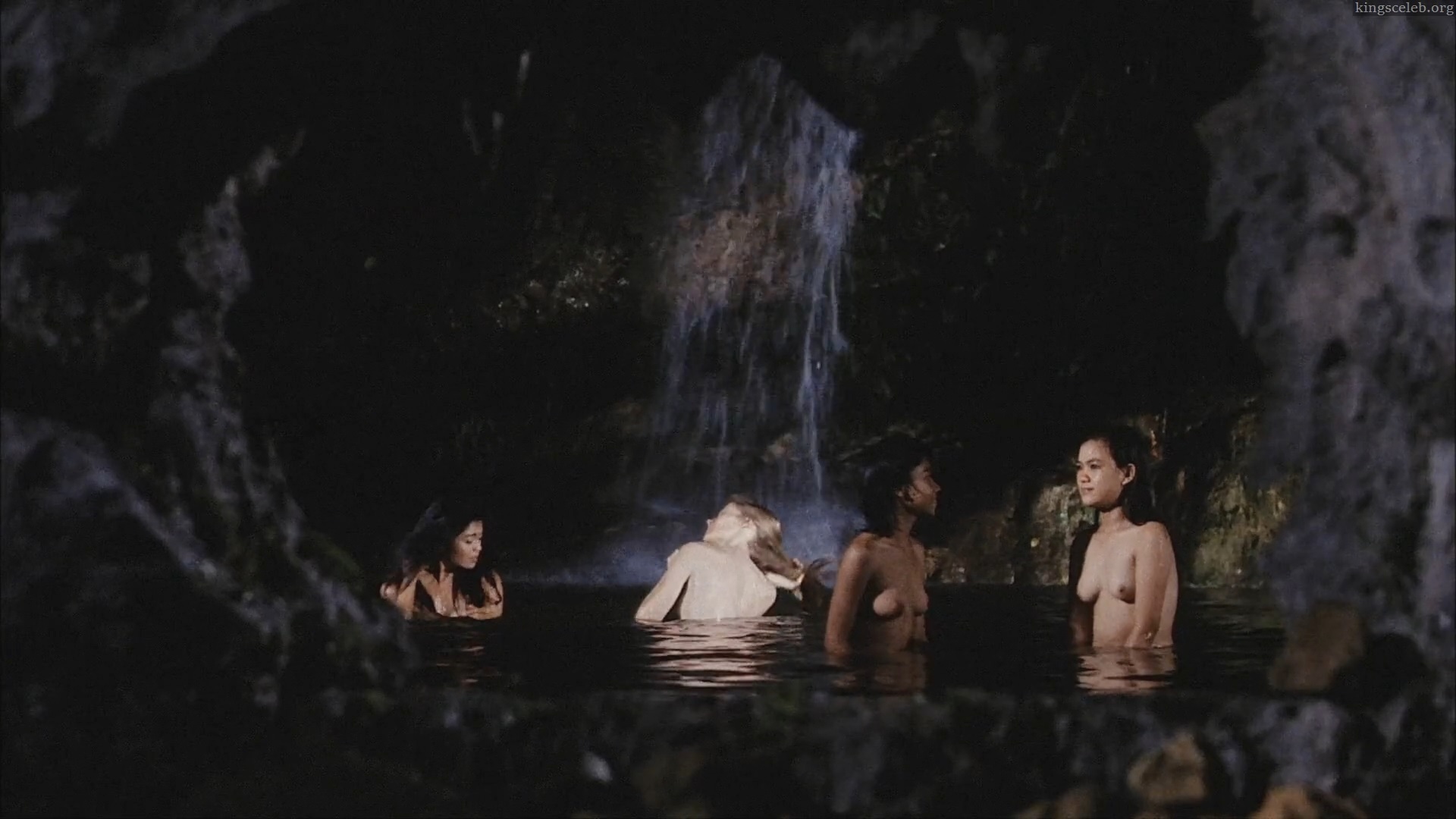 Naked Jillian McWhirter and Maria Isabel Lopez take a bath in the lake.