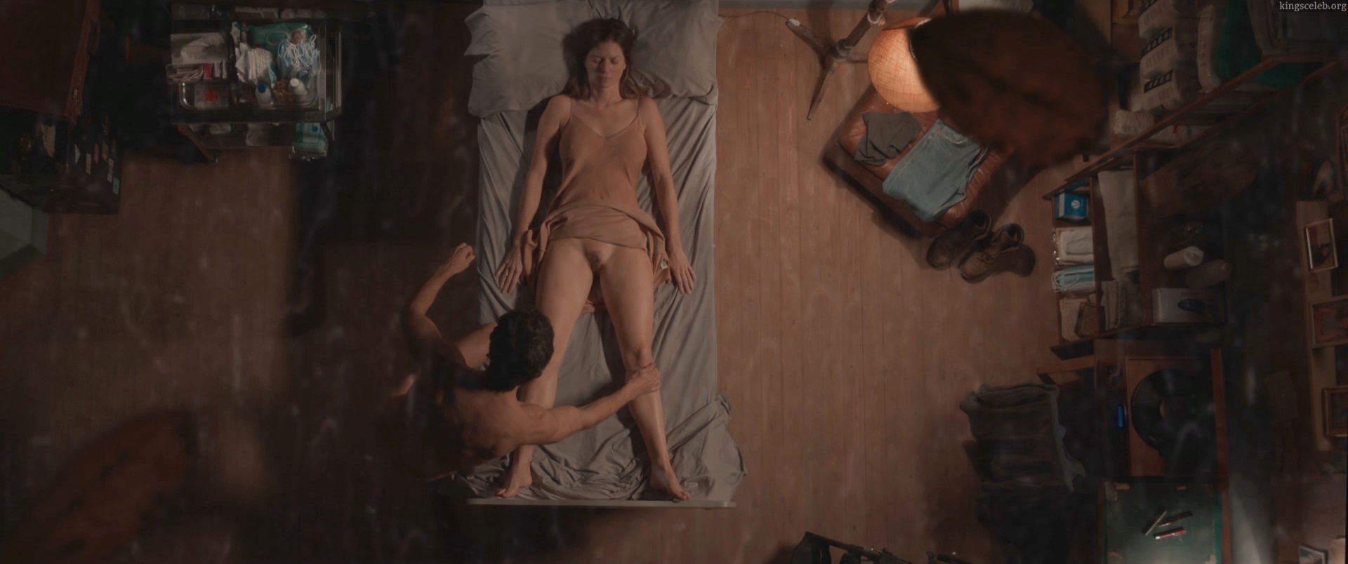 Almudena Amor emerges from the bathtub, drying her naked body with a towel.