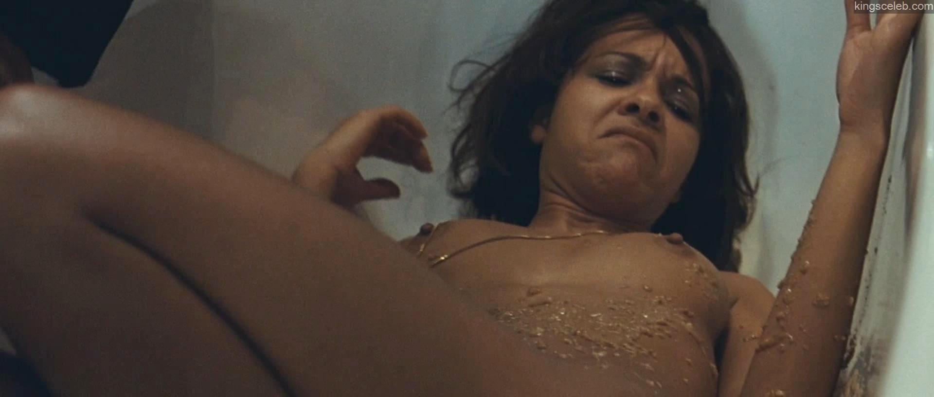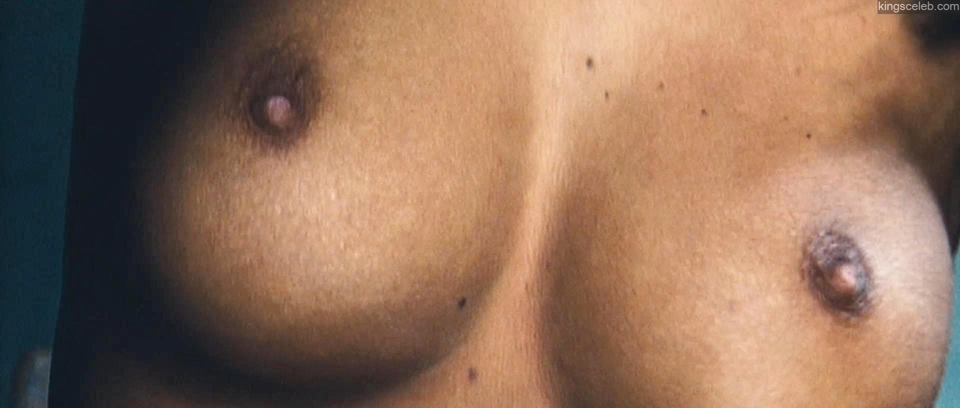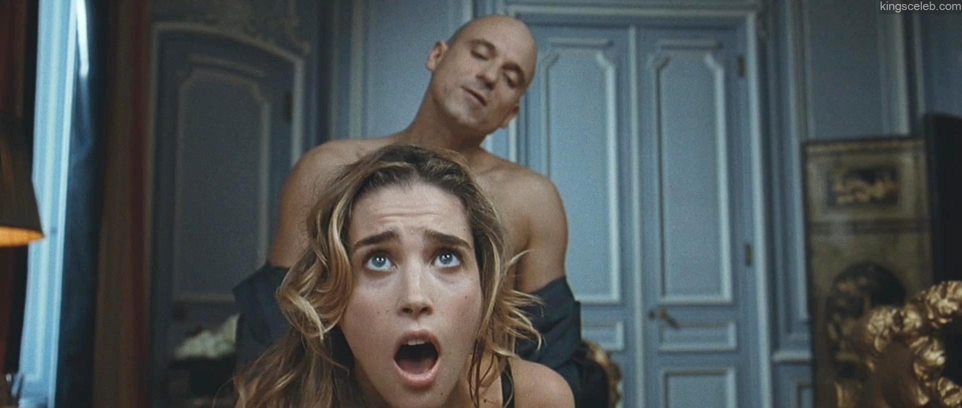 A naked Vahina Giocante lies on top of her lover and kisses him.