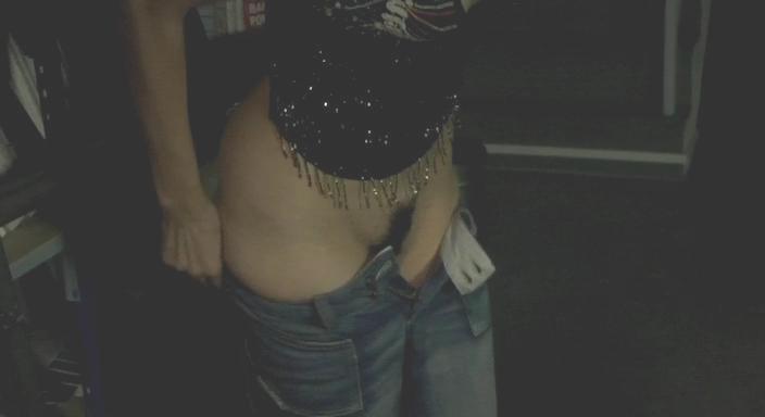 Alexandra Sollogoub strolls around in a sheer tank top and lifts her skirt, revealing her bare bottom.