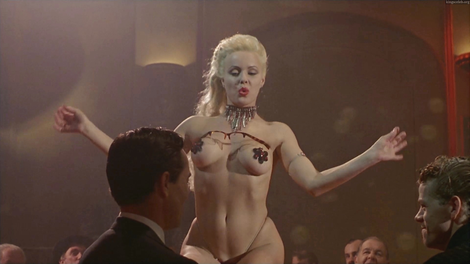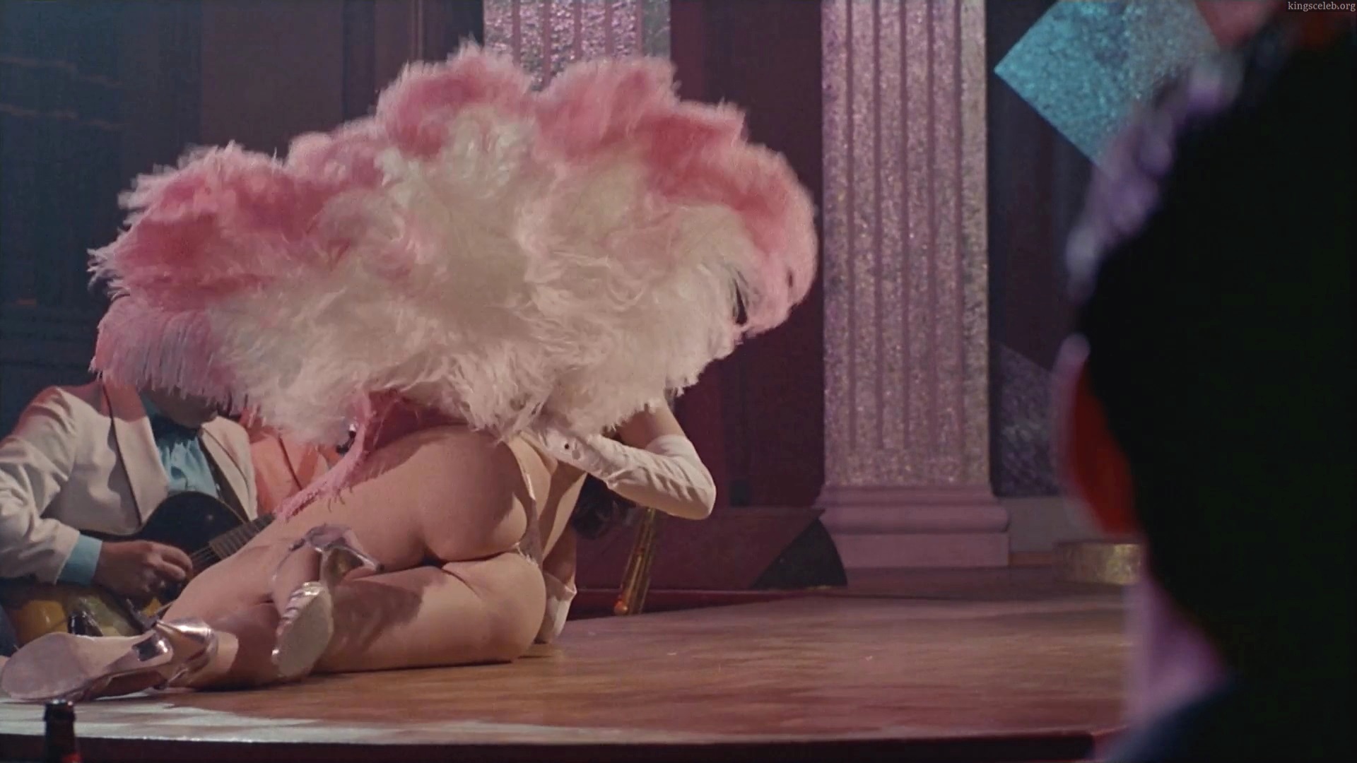 Diane Lane dances a striptease with white and pink feathers.