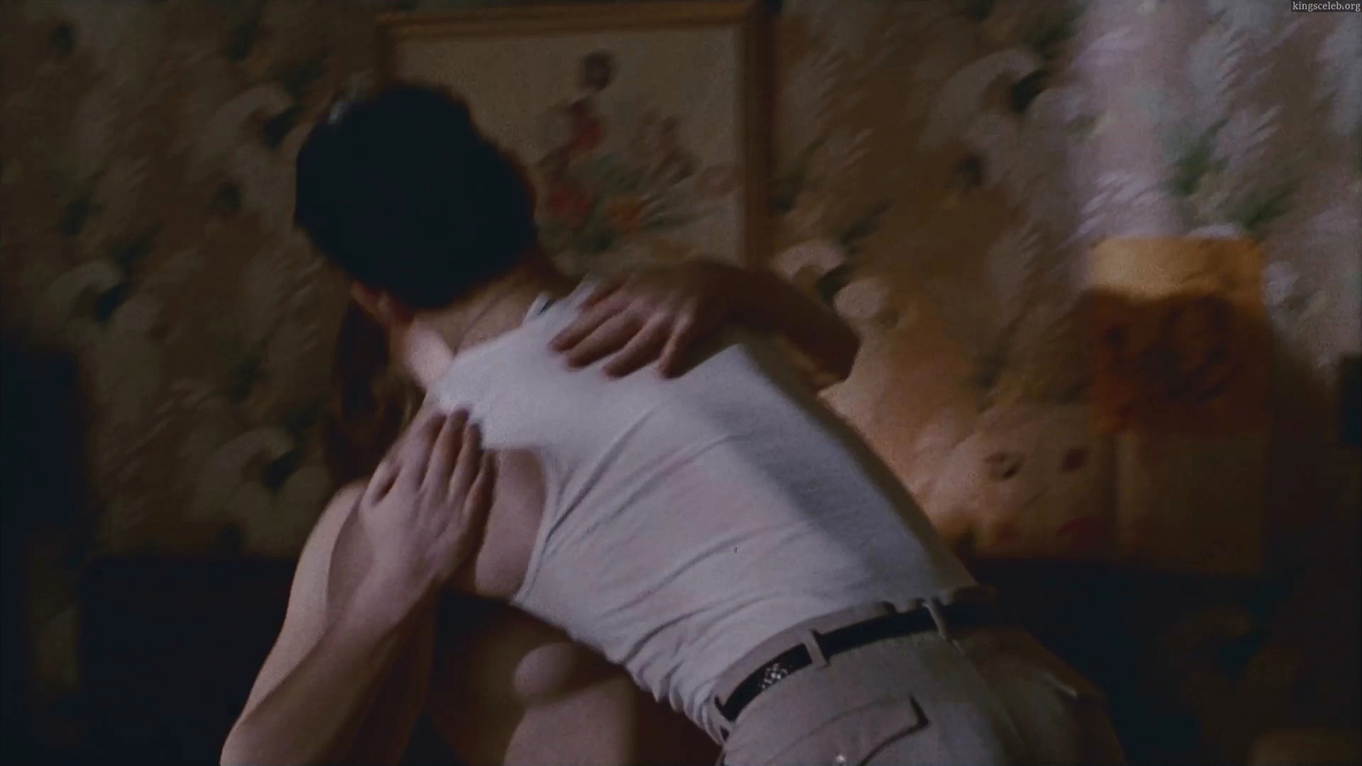 Suzy Amis takes off her bra and gets into bed with a guy.