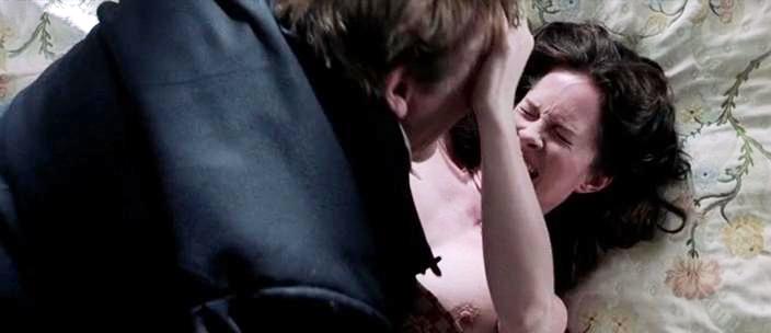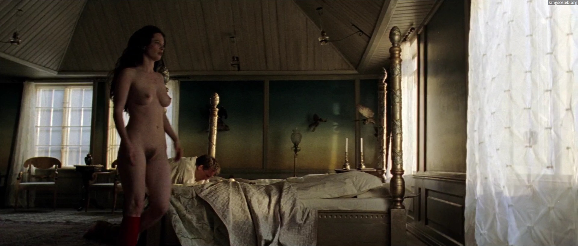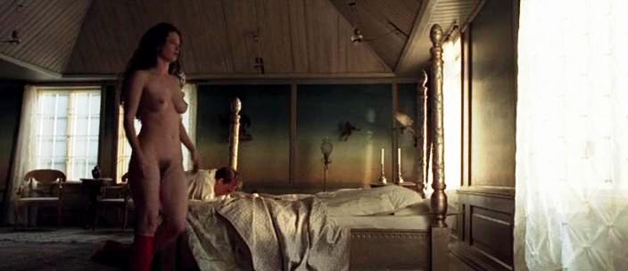 Naked Maria Bonnevie stands by the window and watches her husband undress.